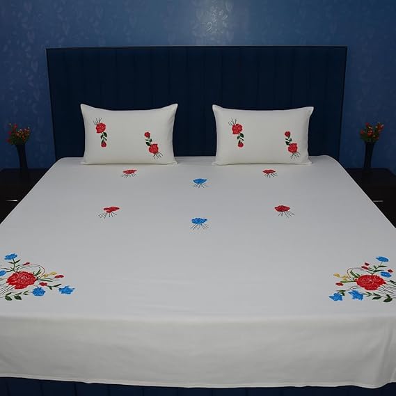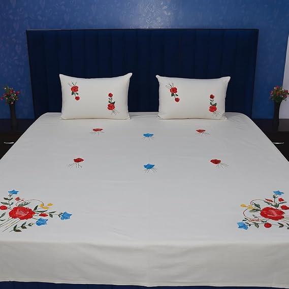 Be the first to review “Swadha Romantic Heart Embroidered Cotton Double Bedsheet Set with 2 Pillow Covers, White and Red, Handcrafted Design for Wedding and Bedroom Decor” Cancel reply