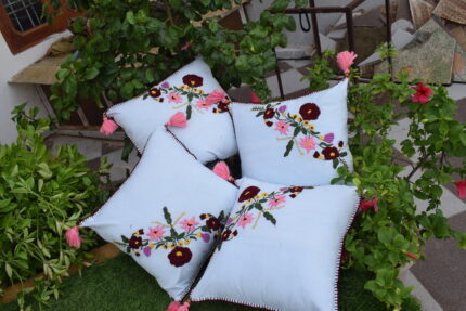• Swadha Home Décor Handcrafted Floral Embroidered Cotton Cushion Covers with Tassels, Light Blue, Pink and Burgundy Floral Design, 16x16 Inch, Set of 4 Swadha Home Décor Handcrafted Floral Embroidered Cotton Cushion Covers with Tassels, Light Blue, Pink and Burgundy Floral Design, 16x16 Inch, Set of 4 ₹3,999.00 Original price was: ₹3,999.00.₹1,999.00Current price is: ₹1,999.00.