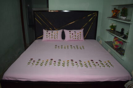 SWADHA Handmade Embroidered Cotton Bedsheet Set with 2 Pillow Covers, Pink, Floral Aari Embroidery, Soft Double Bed, Luxury Home Decor
